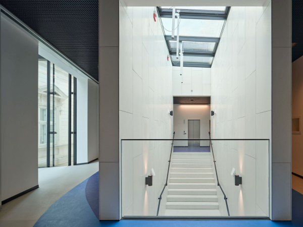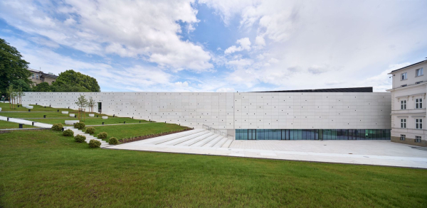 Ekipa Nizio Design International stworzyła tutaj kompozycję przestrzenną opartą na współpracy między przeszłością a teraźniejszością. Budynek o dość skromnej formie z betonu architektonicznego, perforowanego niczym rolka filmowa, połączono z zabytkową Willą Rotha, zrekonstruowaną z niesamowitą dbałością o szczegóły. Dwa obiekty łączy przeszklony korytarz, który spełnia funkcję komunikacyjną i symboliczną, tworząc metaforyczny pomost między dziedzictwem a przyszłością. W projekcie widać silną dyscyplinę formy i świadomość materiałów. Światło jest tu równoważnym tworzywem architektury, które organizuje otoczenie, ożywia perforowaną elewację i wprowadza do środka element niemal filmowej narracji.
