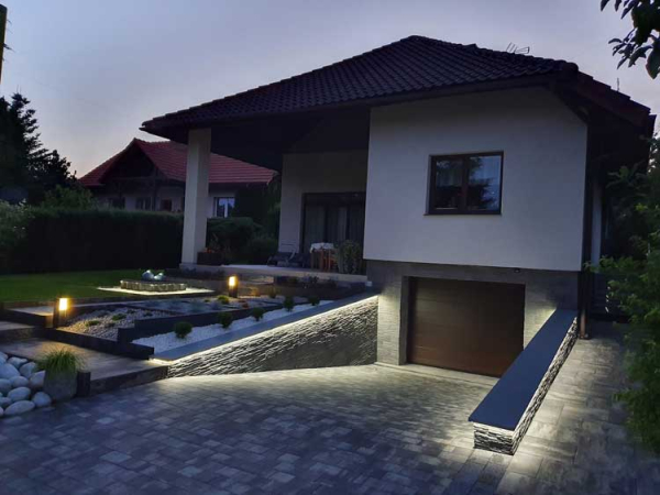 Od razu przychodzą na myśl dwa rozwiązania – systemy zapobiegające oblodzeniu i dobre oświetlenie. Te pierwsze są bardzo cenione zwłaszcza w rejonach, gdzie zimy są dłuższe i obfitujące w opady. Wynika to z czystego pragmatyzmu właścicieli, którzy w ten sposób chcą oszczędzić swój czas i uniknąć czasochłonnego odśnieżania. Istotny jest też aspekt troski o powierzchnię i jej właściwą eksploatację. Układy grzejne umieszczone pod wjazdem lub chodnikiem rozpuszczają śnieg i lód, które długoterminowo mogą negatywnie oddziaływać na jego stan. Pozwala to również nie stosować soli, która często powoduje nieestetyczne wykwity, a także ma negatywny wpływ na otoczenie. Gdy zdecydujemy się na takie rozwiązanie warto pomyśleć o automatyzacji, która będzie włączać system, kiedy będzie to potrzebne, co pozwoli sporo zaoszczędzić. Należy też pamiętać, że rodzaj systemu zapobiegającego oblodzeniu należy dopasować do budowy wjazdu. W przypadku niedługich konstrukcji o niewielkim nachyleniu zaleca się stosowanie mat lub kabli grzejnych ułożonych na szerokość rozstawu kół samochodu. Zaś, jeśli wjazd jest długi, mocno nachylony lub cechuje się dużym natężeniem ruchu, specjaliści polecają ułożenie systemu na całej powierzchni. Warto też zadbać o jego dobre oświetlenie. Wie o tym każdy, kto choć raz poruszał się autem na nieoświetlonym parkingu. Linie prowadzące można wbudować w wierzchnią warstwę i dodatkowo zamontować oświetlenie średnie i wysokie tak, aby cały wjazd był dobrze oświetlony. Aby zaoszczędzić, warto zainwestować w czujniki, które będą włączać oświetlenie dopiero, gdy wykryją ruch.