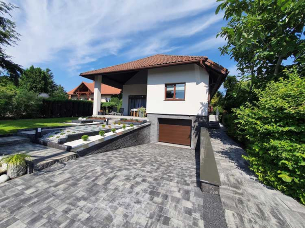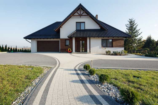 Generalnie zakłada się, że wjazd przed domem powinien być nieco większy niż typowe miejsce postojowe. Jego minimalna szerokość to od 2,5 do 3 metrów, a długość – 5 metrów. Naturalnie to absolutne minimum i im więcej przestrzeni na niego wygospodarujemy, tym poruszanie się po nim stanie się prostsze i bardziej komfortowe. Ma to ogromne znaczenie zwłaszcza, gdy garaż jest umieszczony poniżej poziomu drogi, co dość często spotyka się w aktualnym budownictwie. Obecnie wjazdy najczęściej wykonuje się z kostek lub płyt betonowych, ponieważ jest to rozwiązanie nieskomplikowane, solidne i szybkie w realizacji, a sama powierzchnia – łatwa w konserwacji. Jedynym technicznym warunkiem, na który warto zwrócić uwagę jest grubość elementów, z których tworzymy wierzchnią warstwę wjazdu. Powinna ona wynosić co najmniej 6 cm, gdy mają na nim parkować samochody do 3,5 tony. Prawidłowo dobrana grubość kostek lub płyt gwarantuje odpowiednią wytrzymałość i brak uszkodzeń powierzchni. Przy większej wadze aut grubość elementów betonowych powinna wynosić 8, 10, a nawet 12 cm, co umożliwi lepsze przenoszenie obciążeń. Każdy producent dołącza do swoich produktów deklarację właściwości użytkowych i tam znajdują się informacje o przeznaczeniu danego wyrobu – czy jest on rekomendowany do ruchu pieszych, małego ruchu samochodowego dla pojazdów do 3,5t, czy samochodów ciężarowych o wadze powyżej 3,5t. O ile budowa wjazdu na równym terenie nie sprawia większych problemów, o tyle stworzenie pochyłości prowadzącej do garażu podziemnego wymaga znajomości kilku istotnych reguł.