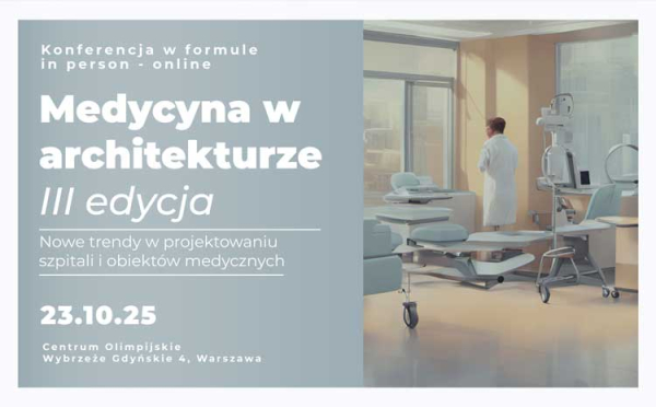 Już za niecały miesiąc, 23 października 2025 roku, w Centrum Olimpijskim w Warszawie odbędzie się trzecia edycja konferencji „Medycyna w Architekturze”. Tematem przewodnim tej edycji będą standardy projektowania infrastruktury medycznej. Zapraszamy architektów, administratorów szpitali, dyrektorów ds. inwestycji w ochronie zdrowia, doradców technicznych ds. aparatury medycznej, lekarzy oraz wszystkich zainteresowanych tworzeniem optymalnych warunków terapeutycznych w nowych i modernizowanych placówkach opieki zdrowotnej.