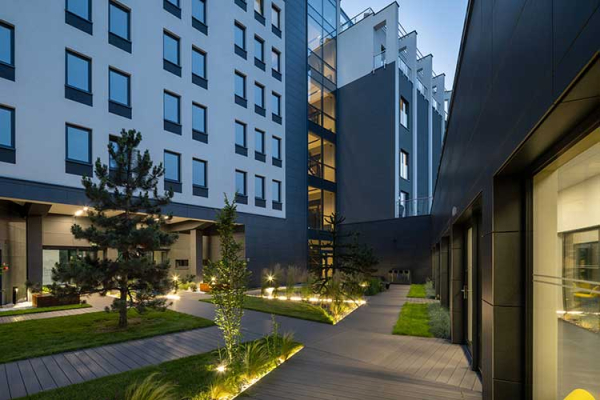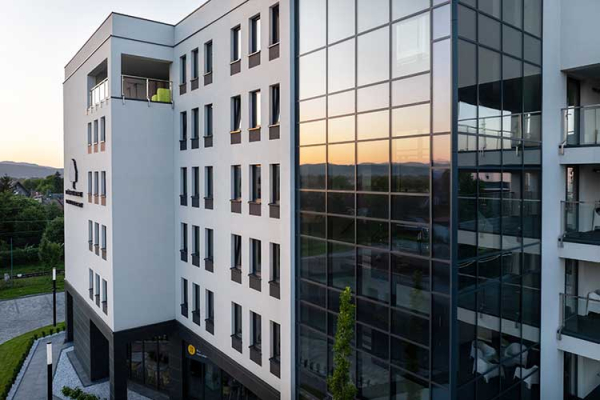 Oba budynki łączy wspólne podejście do studentów jako wymagających użytkowników, którzy oczekują nie tylko funkcjonalności, ale i wysokiej jakości przestrzeni. Zarówno Nowy Sącz, jak i Kraków wyróżniają się dbałością o estetykę architektoniczną. Proste bryły uzupełniają duże przeszklenia, które harmonijnie komponują się z miejskim krajobrazem i wpuszczają naturalne światło do wnętrz. Nowoczesne systemy stolarki aluminiowej WIŚNIOWSKI odgrywają tu szczególną rolę, zapewniając komfort termiczny i akustyczny oraz podkreślając nowoczesny charakter budynków. Kluczowym elementem są również przestrzenie wspólne: strefa relaksu, nauki i spotkań, które sprzyjają integracji i budują wspólnotę studencką.