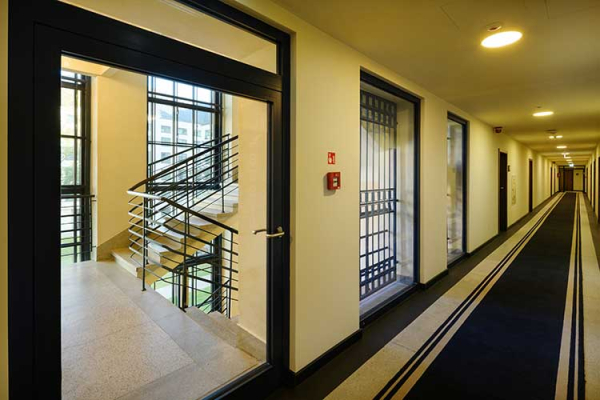 - Okna aluminiowe MB-79N ST i MB-86 SI – energooszczędne rozwiązania o bardzo dobrych parametrach izolacyjności termicznej (nawet Uw=0,75 W/m²K), zapewniające mieszkańcom akademików komfort termiczny i akustyczny.