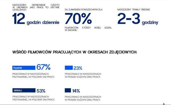 - 21 proc. filmowców pracowało w nadgodzinach przez większość dni,