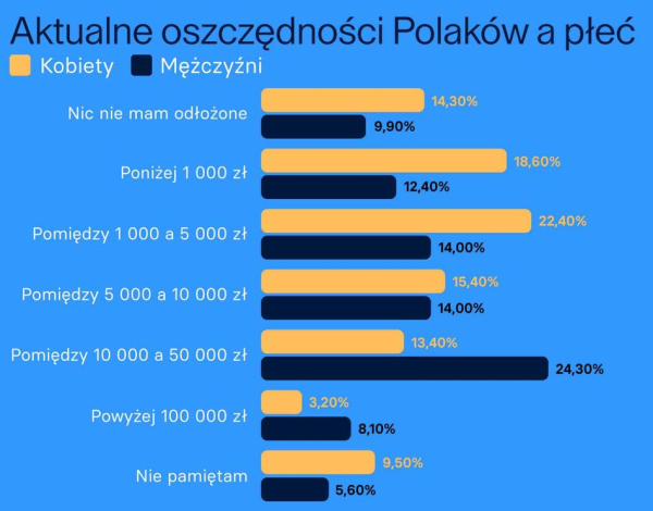 Najświeższe dane ujawniają, że w naszym kraju wciąż rysuje się wyraźna przepaść w udziale finansowym kobiet i mężczyzn. Odmienności w podejściu do zarządzania finansami między płciami są dostrzegalne zarówno w wartości zgromadzonych aktywów, jak i w sposobie wykorzystywania produktów finansowych. Zgodnie z wynikami badania UCE Research na zlecenie Raisin, ponad 62 proc. panów deklaruje posiadanie oszczędności przekraczających 5 tys. zł, podczas gdy wśród pań ten odsetek wynosi jedynie 51,2 proc. Wyraźne są też rozbieżności w zaufaniu do innowacyjnych rozwiązań finansowych – zaledwie 39,6 proc. kobiet ufa platformom finansowym online, w porównaniu do ponad połowy mężczyzn.