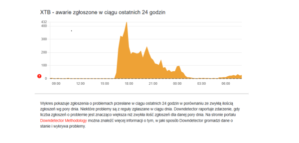 Fora inwestorskie były bardzo aktywne, a klienci na podstawie własnych obserwacji próbowali rozwiązać zagadkę problemów XTB trwających kilka godzin. W środę nie było więcej oficjalnych komunikatów. Jednak downdetector sugeruje, że w czwartek rano wciąż zgłaszane są problemy z platformą XTB.