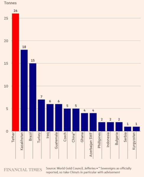 26 ton: Tether jest jednym z największych nabywców złota na świecie