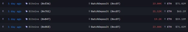#Bitmine Toma Lee (@fundstrat) w ciągu ostatnich 2 godzin przyniósł kolejne 109 504 ETH (340,6 mln USD).