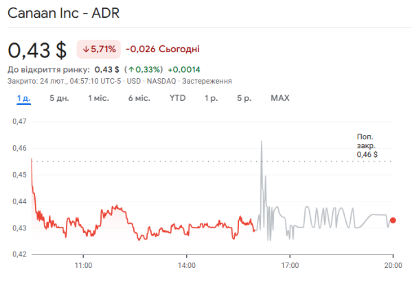 Jednak akcje Canaan spadły o 5,71% do 0,43 USD. W ciągu ostatniego miesiąca wartość papierów wartościowych spadła o 38,71%.