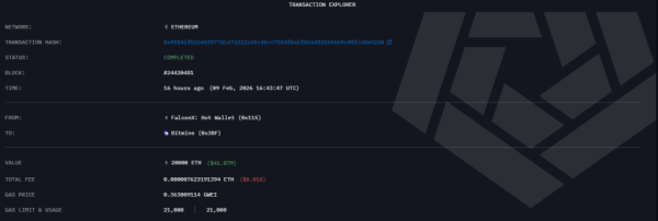 BitMine Immersion Technologies pozyskało dodatkowe 40 000 ETH o wartości około 83,6 miliona dolarów. Według Arkham Intelligence, firma otrzymała 20 000 ETH od FalconX.
