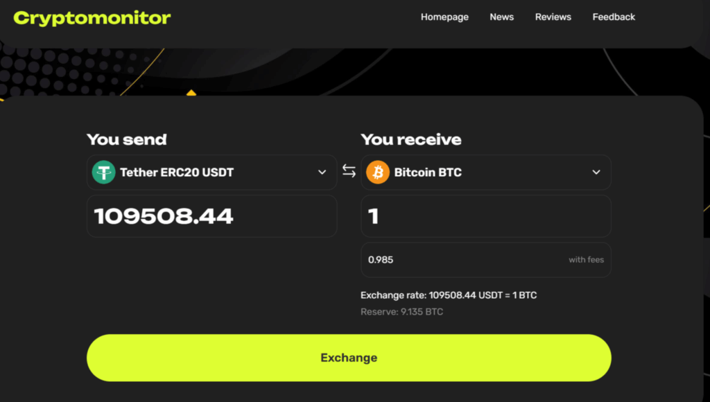 Kantory online, w tym te specjalizujące się w szybkich swapach, stają się preferowanym wyborem dla codziennych transakcji. Jedną z nich jest CryptoMonitor, platforma umożliwiająca błyskawiczną wymianę kryptowalut bez obowiązkowej weryfikacji tożsamości. To rozwiązanie idealne dla użytkowników ceniących prywatność i wygodę – transakcje realizowane są w ciągu minut, z minimalnymi opłatami i wsparciem dla popularnych par walutowych.