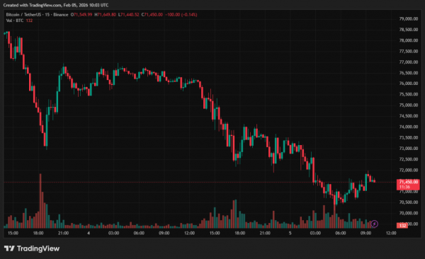 15-minutowy wykres BTC/USDT na Binance. Źródło: TradingVIew.
