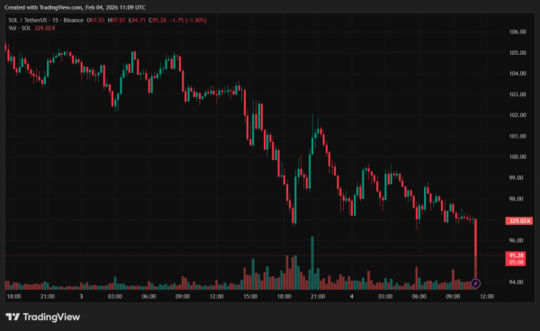 15-minutowy wykres SOL/USDT na giełdzie Binance. Źródło: TradingView.