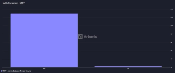 Łączny wolumen wartości on-chain przekazanej w USDT w 2025 r. Źródło: Artemis.