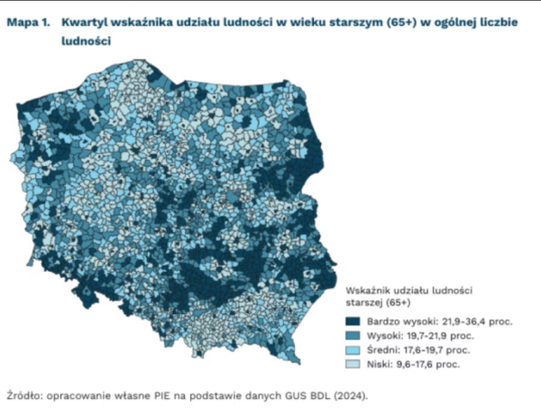 "Narastające starzenie się populacji będzie przyczyniać się do powiększania istniejących rozbieżności terytorialnych oraz zwiększać obciążenie dla gmin o niekorzystnej strukturze wiekowej. Przyrost liczby osób w podeszłym wieku będzie skupiał się głównie w obszarach o słabej atrakcyjności migracyjnej i długotrwałym spadku liczby ludności, co oznacza, że efekty starzenia się (w tym rosnące zapotrzebowanie na opiekę długoterminową i świadczenia zdrowotne) nie będą rozłożone równomiernie" – napisano w sprawozdaniu PIE.