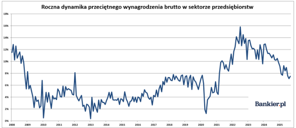Według informacji z GUS za wrzesień 2025 r., tempo wzrostu średnich płacw sektorze przedsiębiorstw było w linii z przewidywaniami. Najwyższe dochodyosiągali pracownicy w branżach związanych z informacją i komunikacją. Naciskwynagrodzeń stabilizuje się na poziomie przekraczającym 7 procent. Warto podkreślić, że średnie nominalnewynagrodzenia po przeliczeniu na wspólną walutę europejską są niższe od minimalnychpłac w niektórych państwach Europy Zachodniej. Poziom zatrudnienia w Polsce ponownie zmalał.