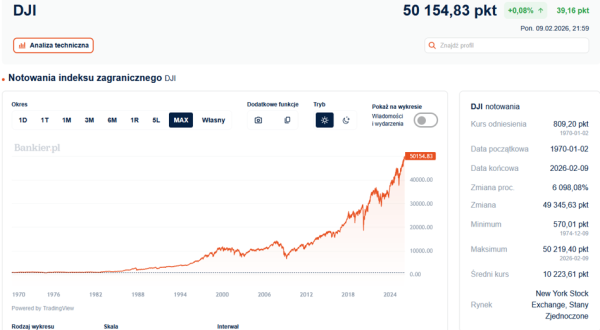 AI zyskuje na wartości. Dow Jones przebija 50 tysięcy.