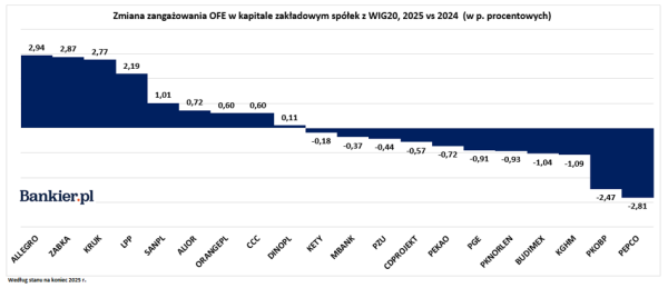 Badanie zaangażowania Otwartych Funduszy Emerytalnych w akcje firm notowanych na Warszawskiej Giełdzie Papierów Wartościowych. Kapitał instytucjonalny dokonał zmian w strategiach inwestycyjnych w roku 2025.