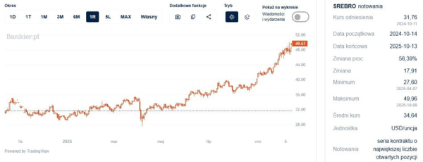 „Najbardziej realnym kierunkiem dla notowań srebra w horyzoncie średnioterminowym są kolejne zwyżki, gdyż obniżki stóp procentowych Fed przyciągają przypływ kapitału. Niemniej jednak w krótkim okresie przewidujemy większą zmienność i większe ryzyko spadkowe niż w przypadku złota, co odzwierciedla skromniejszy i mniej płynny rynek srebra. Bez interwencji ze strony banków centralnych, które mogłyby doprowadzić do ustabilizowania cen srebra, nawet chwilowe ograniczenie napływów inwestycyjnych mogłoby wywołać nieproporcjonalną korektę, gdyż osłabiłoby to także zacieśnienie na rynku w Londynie, które w dużej mierze przyczyniło się do ostatnich wzrostów” – dodano.