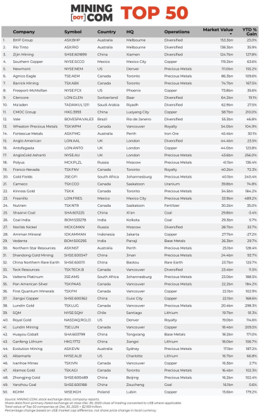 Imponujący skok kursu akcji KGHM pod koniec 2025 r. umożliwił spółce powrót do zestawienia 50 najcenniejszych firm górniczych świata. Cały 2025 rok zapisał się na kartach historii branży wydobywczej jako okres spektakularnych wzrostów wycen giełdowego górnictwa. Sumaryczna kapitalizacja rynkowa największych spółek górniczych świata osiągnęła niebotyczny poziom 2,17 biliona dolarów, co implikuje wzrost o 892 miliardy dolarów w ciągu zaledwie jednego roku.