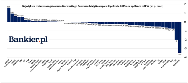 W czwartek 29 stycznia swój raport roczny przedstawia Norweski Fundusz Majątkowy. Dla inwestorów w Polsce szczególnie interesujące są informacje o zmianach zaangażowania największego na świecie państwowego funduszu inwestycyjnego w akcje spółek z GPW. Zestawienie publikowane co pół roku ujawnia, że Norwegowie ponownie dokupili akcji Orlenu, a także powiększyli portfel o walory KGHM, Grupy Żabka, lub XTB. Sprzedawali w zamian udziały m.in. CCC oraz Atalu, natomiast w całości pozbyli się akcji 11 bit studios, Text, czy Wirtualnej Polski.