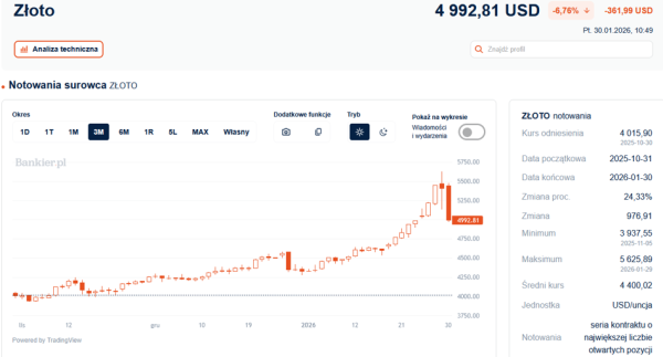 W roku 2025 pierwszy raz w dziejach globu zakupiono ponad 5 000 ton złota. Na ową ilość królewskiego kruszcu wydano 555 mld USD – wynika z danych Światowej Rady Złota. NBP był największym pojedynczym nabywcą „barbarzyńskiego reliktu”.