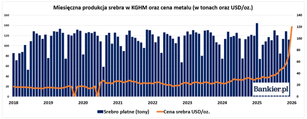 Spektakularny wzrost cen srebra na globalnych rynkach ma zauważalny wpływ na rezultaty KGHM. Jak oceniają analitycy, przy średniej cenie srebra na poziomie 110 dolarów za uncję, przychody spółki ze sprzedaży tylko tego metalu mogłyby wzrosnąć do 14 mld złotych. Inni uważają, iż 5-proc. zwyżka ceny srebra powinna podnieść zysk przed opodatkowaniem, amortyzacją oraz oprocentowaniem o pół miliarda złotych. Robi się nader interesująco, w szczególności, że srebro zdrożało już o więcej niż 400 proc. w dwa lata.