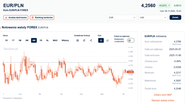 Ważnym momentem dnia dla krajowego sektora walutowego będzie comiesięczna konferencja prasowa szefa NBP Adama Glapińskiego. Czekając na ten komunikat, zaobserwowano skromny wzrost wartości złotego, zarówno w zestawieniu z euro, jak i z dolarem. Waluta szwajcarska nadal słabła.