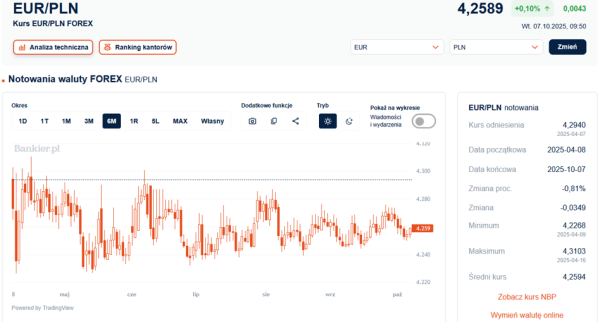 Konsensus rynkowy wskazuje, że stawki procentowe NBP pozostaną bez zmian w październiku, aczkolwiek żaden z ekspertów nie zaryzykowałby własnych środków na potwierdzenie tej prognozy. Analitycy ekonomiczni wyraźnie podkreślają, że obniżka w listopadzie jest najbardziej prawdopodobnym scenariuszem, lecz cięcie stóp już w październiku nie byłoby wielkim zaskoczeniem. Więcej szczegółów na ten temat znajdą Państwo w artykule pod tytułem „Decyzja RPP: ryzyko obniżki stóp jest wysokie, ale nieoczywiste”.