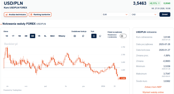 Według ekonomistów Pekao, w perspektywie dłuższego czasu należy się spodziewać, że osłabienie dolara będzie postępować, a w takim wypadku poziom kursu USD/PLN na 3,50 jest już "w zasięgu wzroku". Analiza techniczna wskazuje jednak, że w obecnej sytuacji następny „przystanek” na parze dolar-złoty znajduje się dopiero na poziomie 3,40 zł. Natomiast wieloletnie dno ze stycznia 2018 roku wyznacza linia 3,30 zł za dolara.