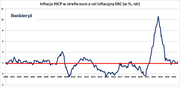Europejski Bank Centralny dostrzega sytuację w bardziej pozytywnym świetle. Według jego symulacji inflacja wyniesie średnio 2,1% w roku 2025, 1,7% w roku 2026 i 1,9% w roku 2027. Dalej będzie to jednak przyrost cen, tylko że wolniejszy niż ma to miejsce np. w Polsce. Należy wspomnieć, że wskaźnik inflacji za wrzesień w naszym kraju wyniósł 2,9%.