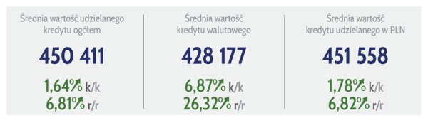 To zjawisko jest rezultatem m.in. powiększającej się wartości średniejhipoteki. Nowe kredyty udzielane są na coraz większe kwoty. W III kw. 2025 r.średnia kwota widniejąca w kontrakcie minęła pułap 450 tys. zł. Rok temu wynosiła ok. 420 tys. zł.