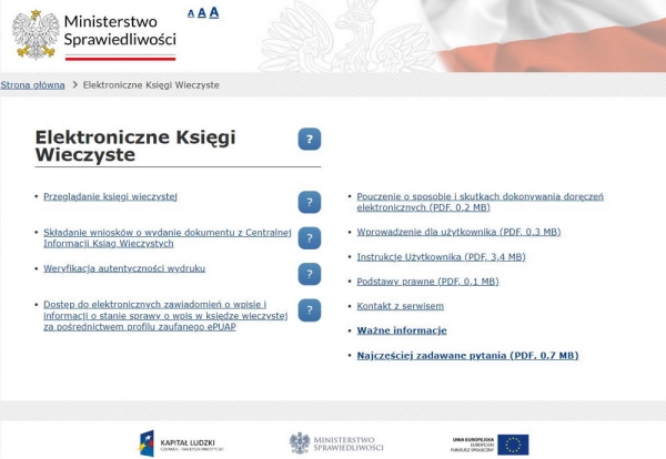Strona główna Elektronicznych Ksiąg Wieczystych prowadzona przez Ministerstwo Sprawiedliwości