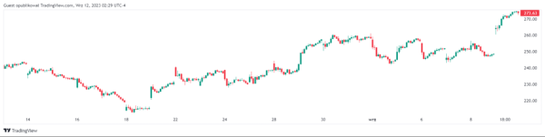 W poniedziałek 11 września Tesla umocniła swoje notowania o ponad 10%, po tym jak Morgan Stanley ogłosił, że superkomputer Dojo może zwiększyć wartość rynkową spółki o 500 mld dolarów. Akcje producenta samochodów elektrycznych zamknęły sesję na poziomie 273 dol.