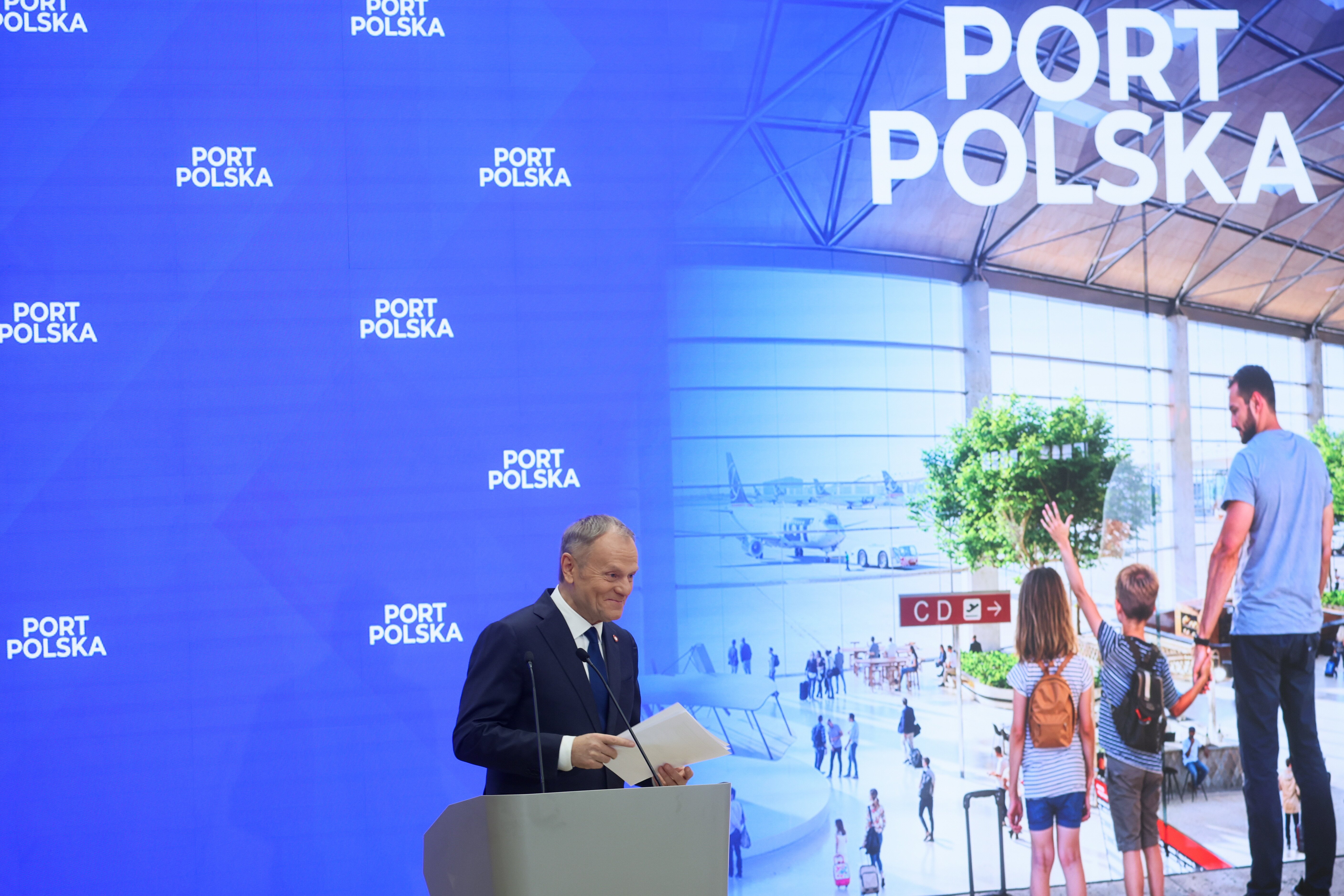 Transport Premier Tusk przedstawia nową nazwę CPK. Aktualnie lotnisko w Baranowie to „Port Polska”